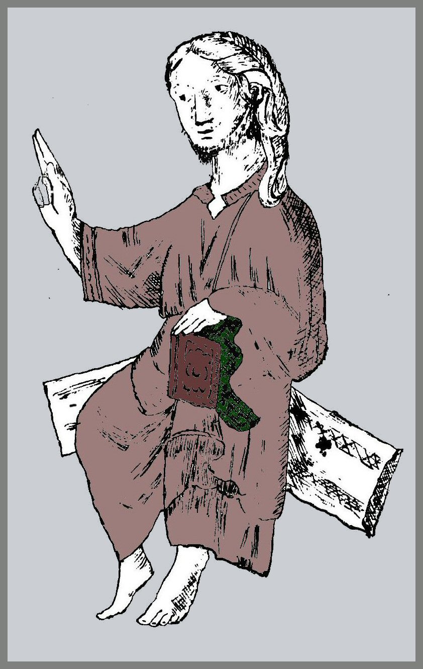 The monk speaks excitedly, “Wait, wait, I have something amazing to tell you about this Arthur fabrication! I figured out that Geoffrey lifted this story about this non-existent Uther from the 'Life of St. Cadog'!LBS