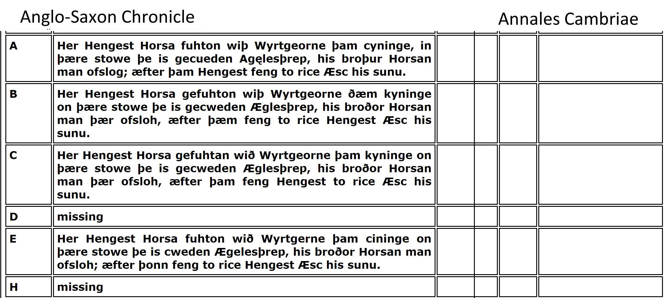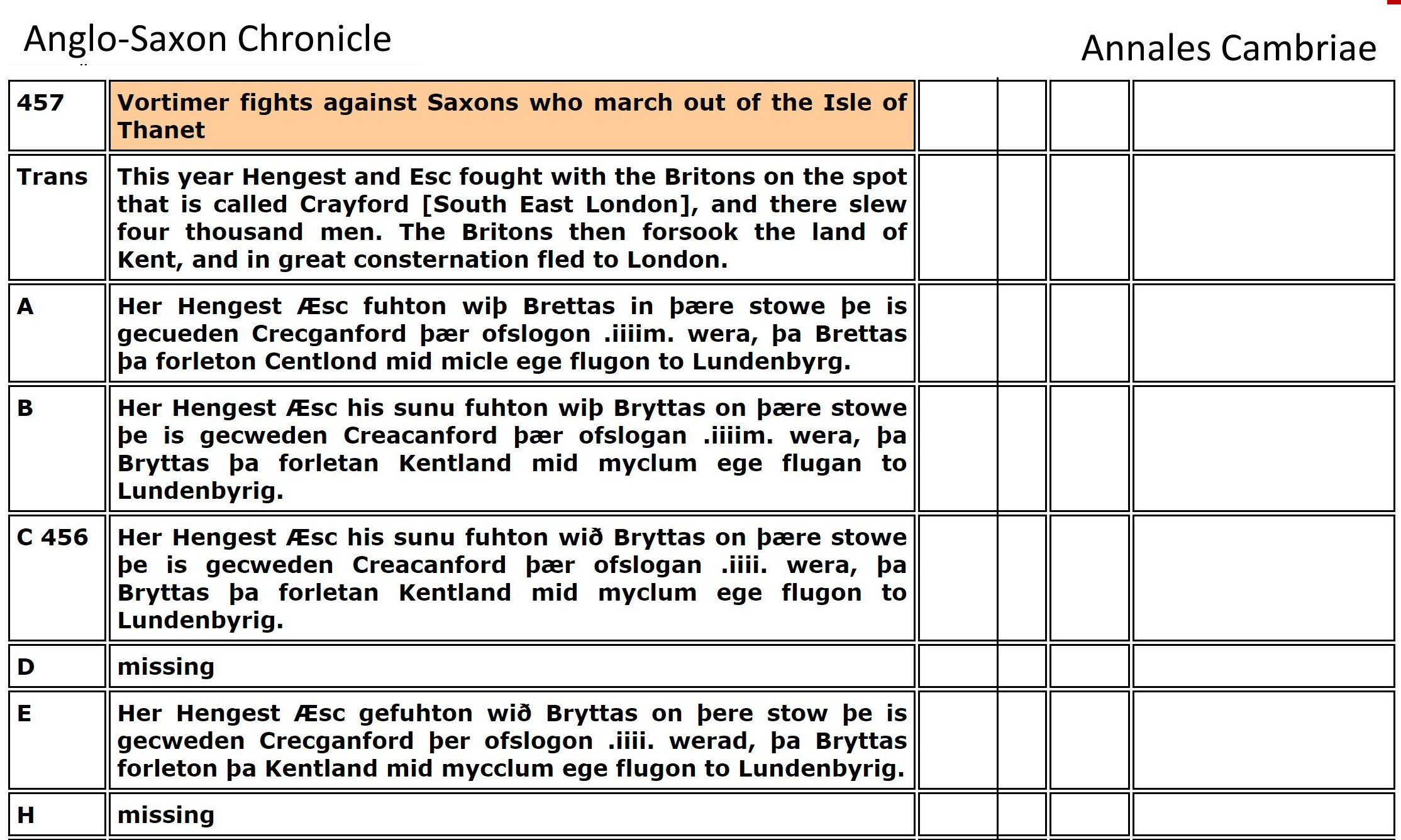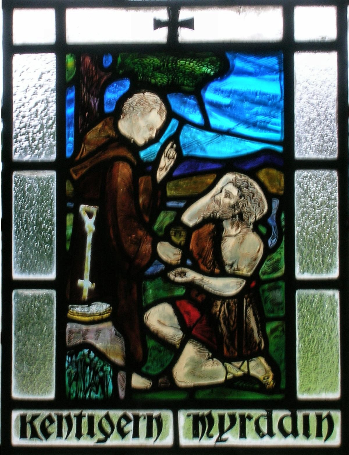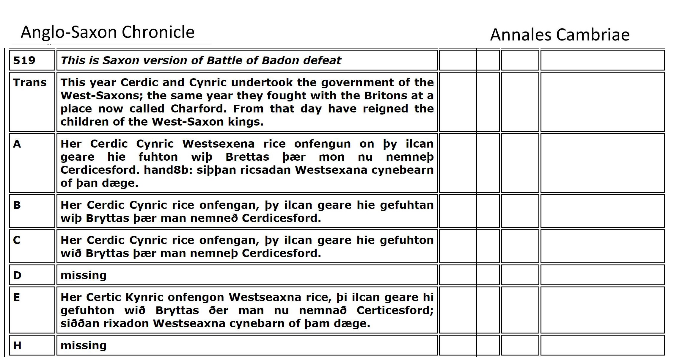 "Ergyng was a small but rich kingdom on the borders of Wales and England around Hereford, know better by the name Archenfeld. Medrawd ap Caurdaf ap Caradoc Vreichfas ap Gwrgan Mawr ap Cynfyn ap Pebiau Claforawg (the Dribbler) who married the daughter of King Cystennyn and was the grandfather of Dubricius from his daughter Yrddil."