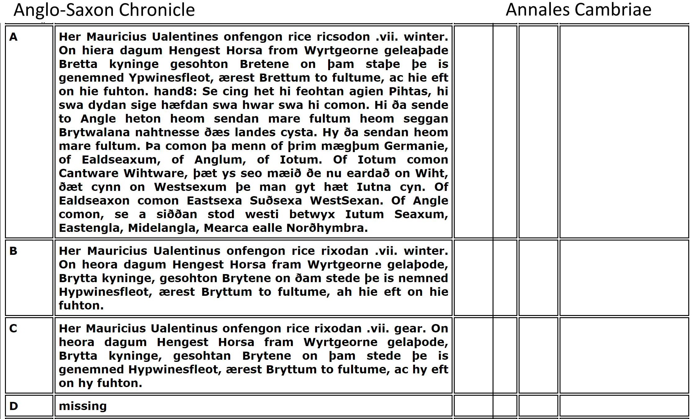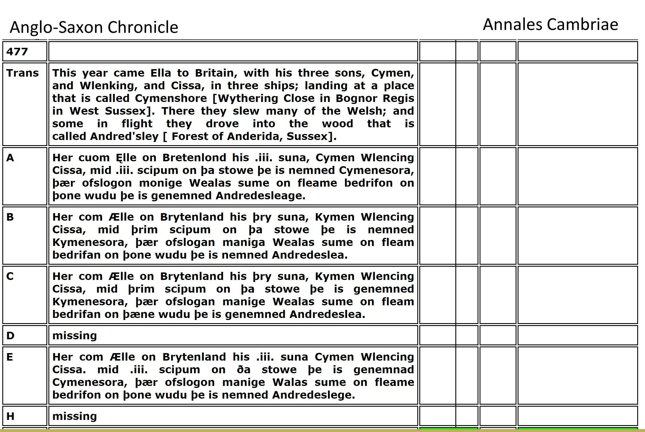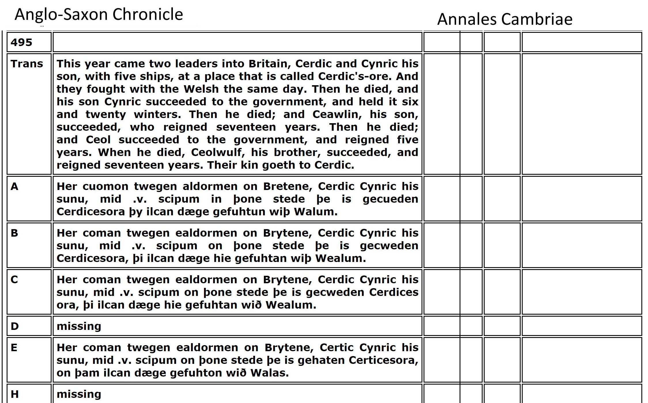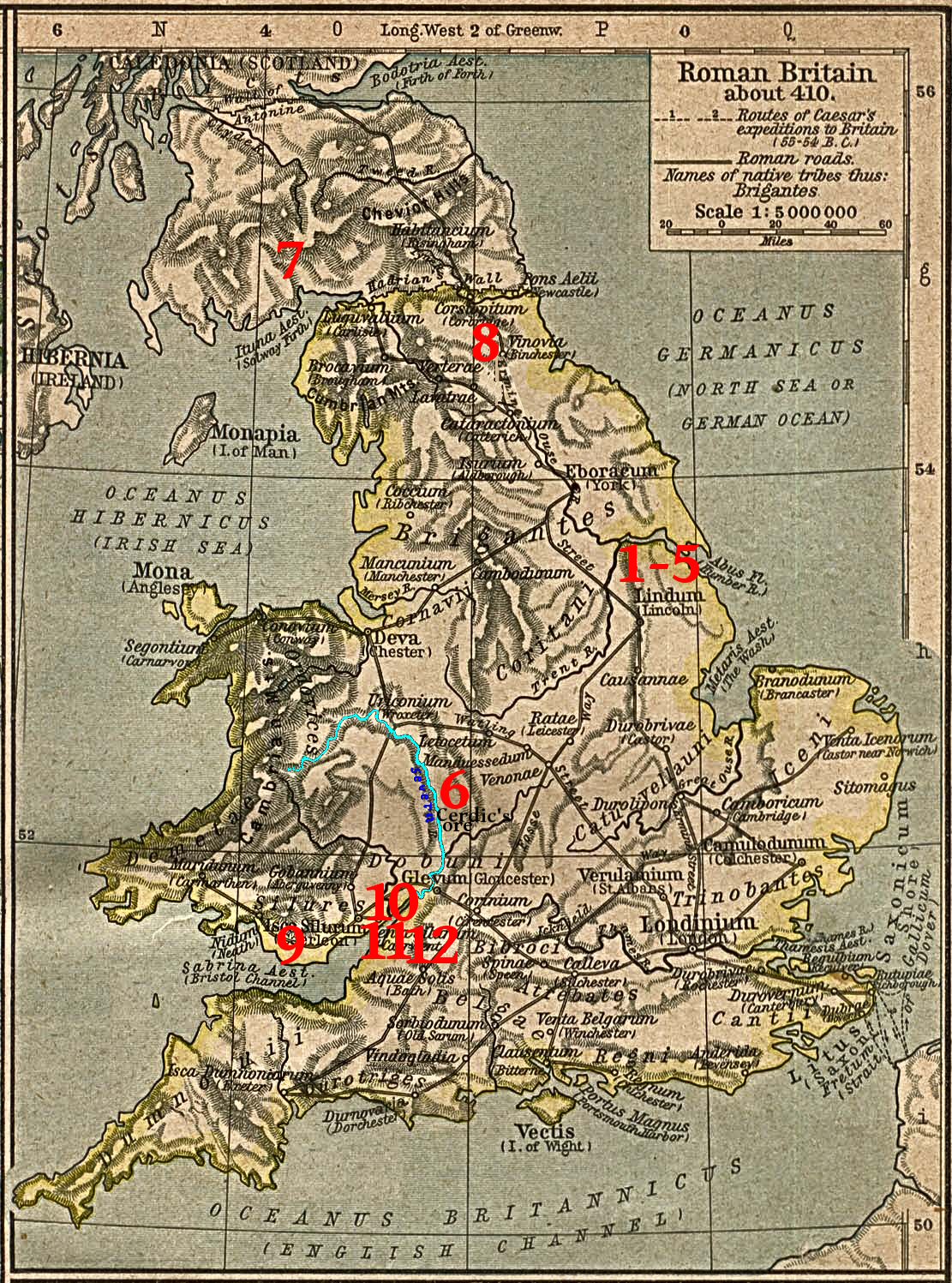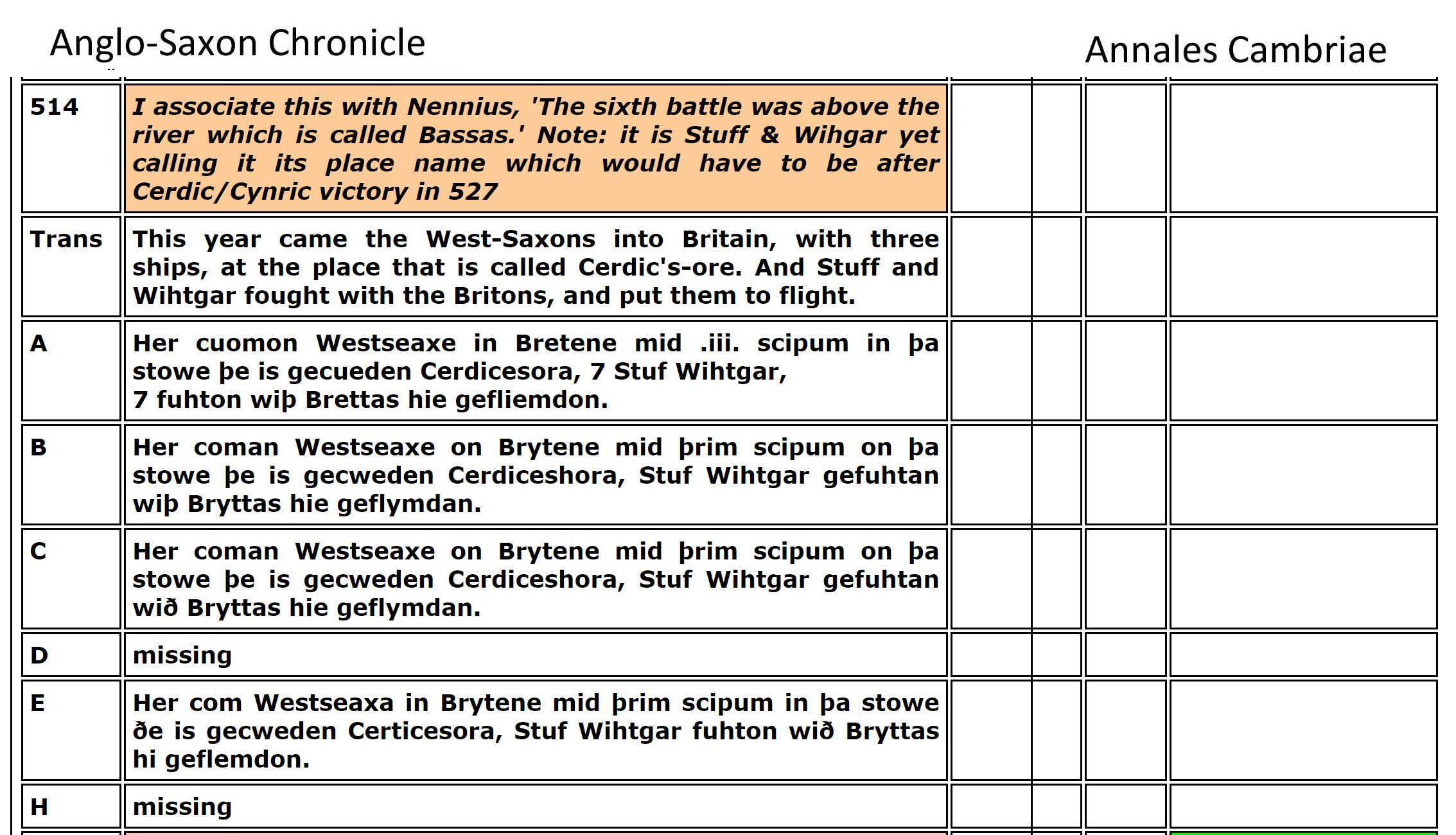 The researchers spend their time digging in Tintagel Castle (built in the 1230s!) and search for clues from Geoffrey of Monmouth's fabricated story. Instead, I found Arthur documented in the Llandaff Charters as the King of Gwent in Wales, studying with the famous Celtic Christian Saints of Wales. Using genealogy I found his descent from Magnus Maximus and Constantine the Blessed, both Emperors of the Western Roman Empire, which made him well-suited to fight against the encroachments of the Saxons and Gewissei. I found many other details in the Anglo-Saxon ChroniclesASC aligned with Annales CambriaeAC, Nennius' (Historia Brittonum)NEN, Lives of the British SaintsLBS, Llandaff ChartersBL, the MabinogionMAB, the TriadsTRI, and joined genealogies of Arthur from Constantine the BlessedA6 including his sister's husbands of Emyr LydawA7.