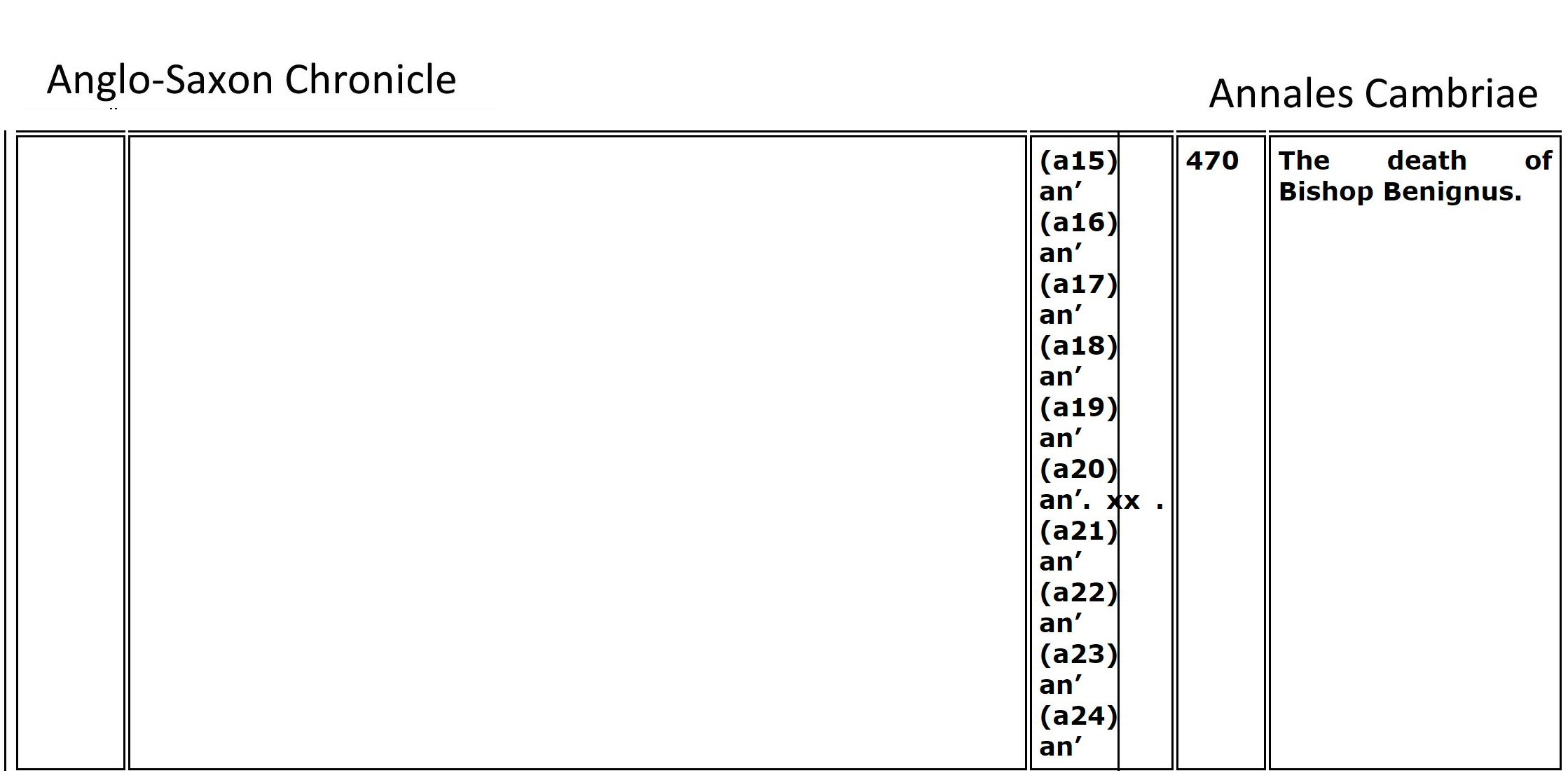 From Table V The Lives of the British Saints, volume 1, by Baring-Gould, S. (Sabine), 1834-1924