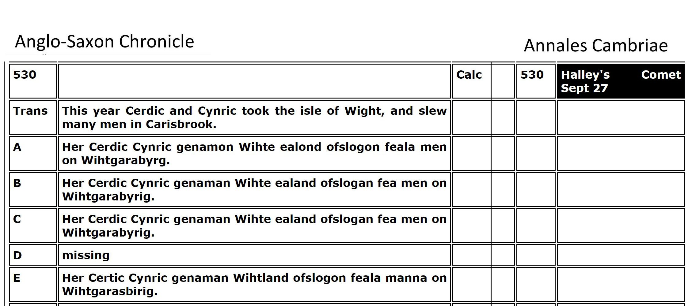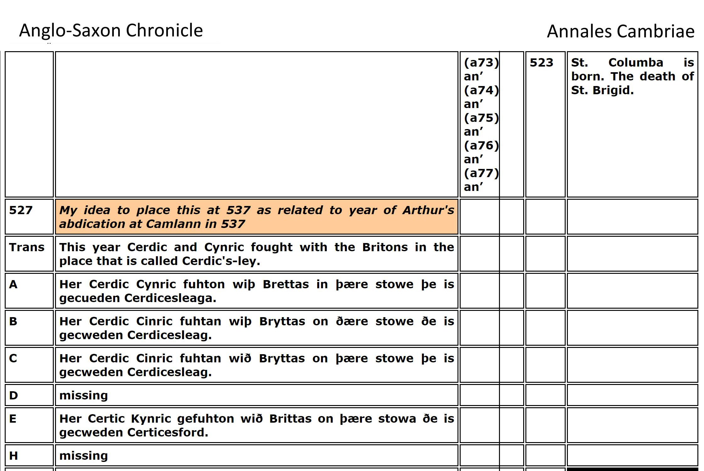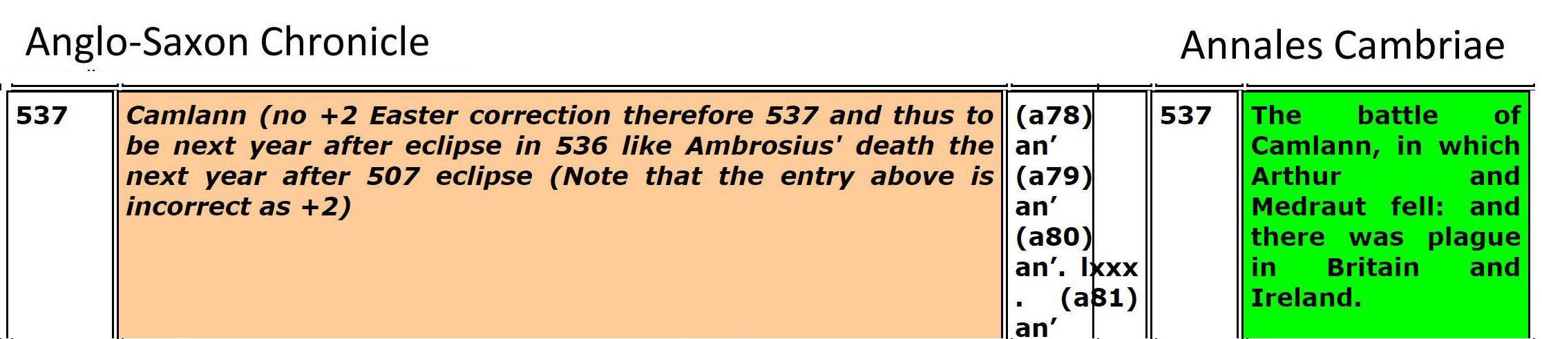 Merlyn exclaims, “Are you denying the histories that say Arthur died in 537 at Camlaan17.2 at the age of 55?”
