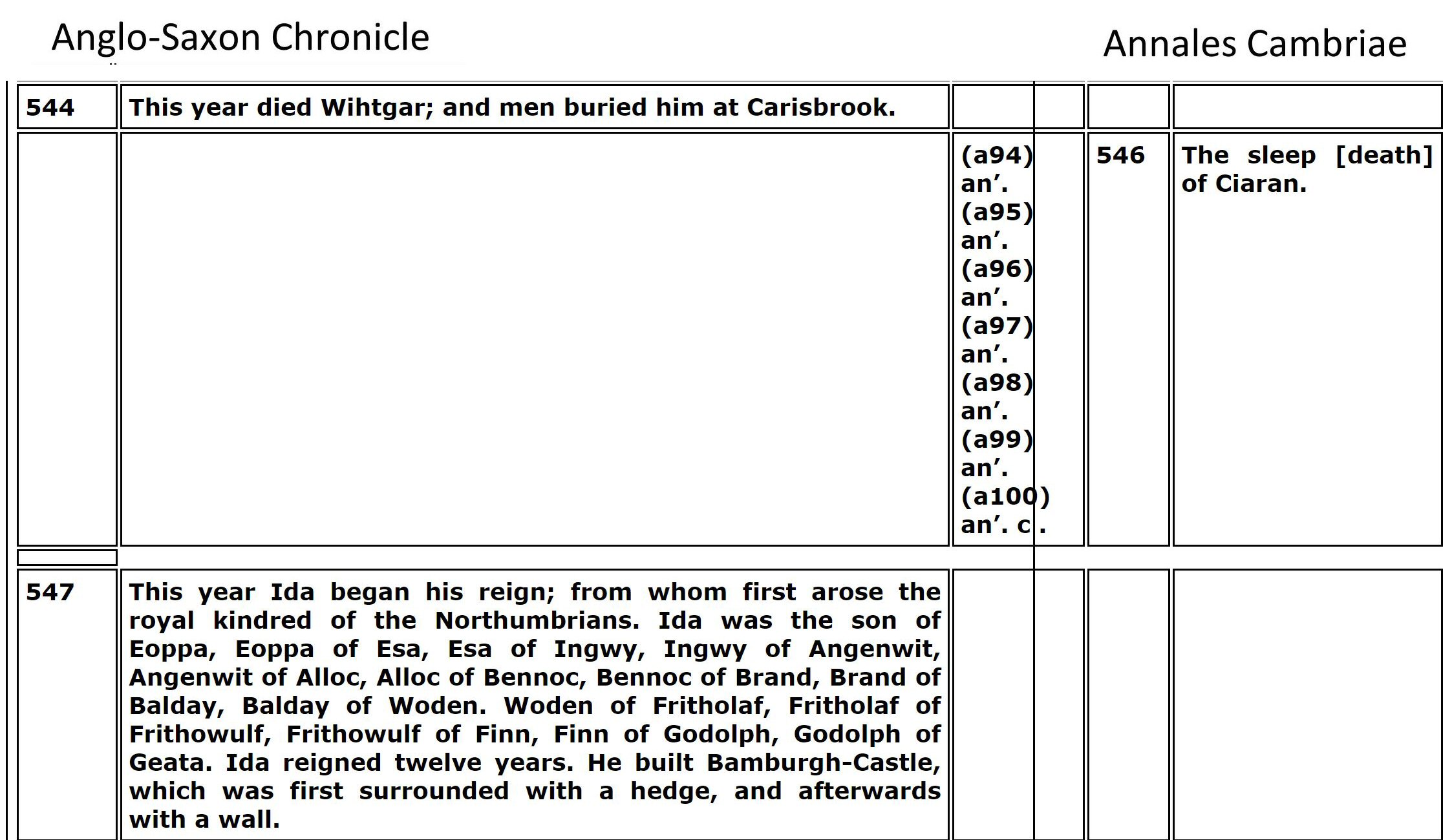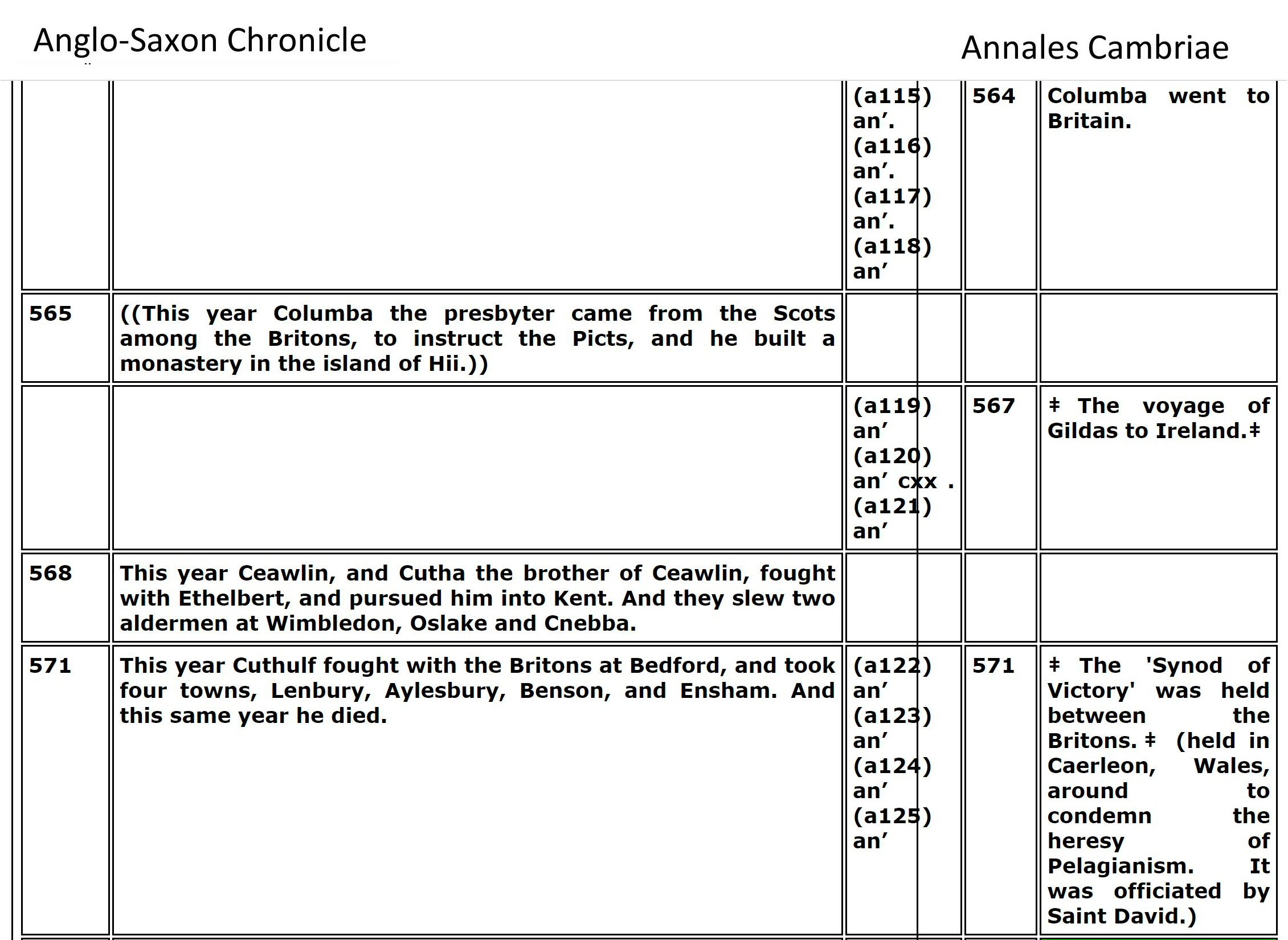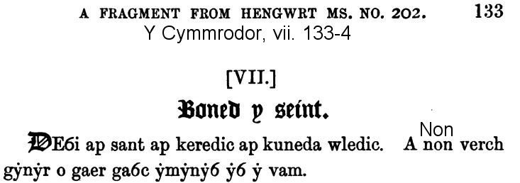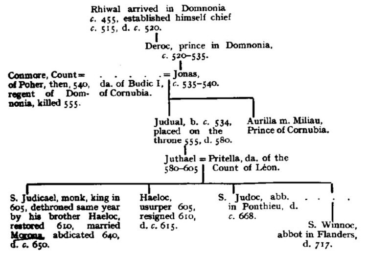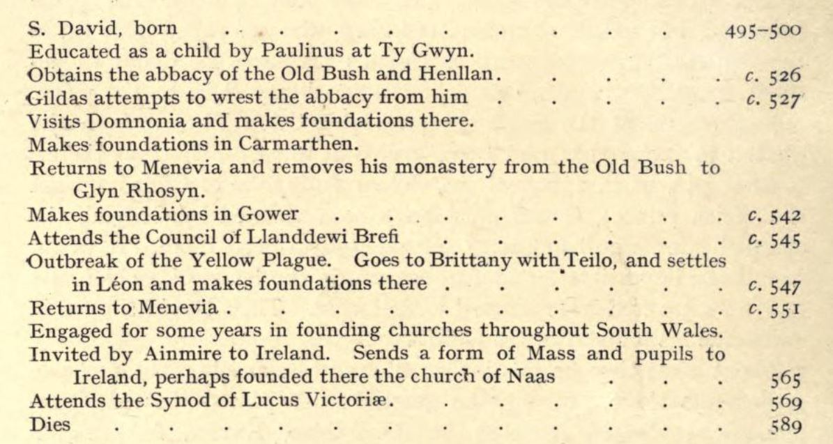 From Table VII The Lives of the British Saints, volume 1, by Baring-Gould, S. (Sabine), 1834-1924