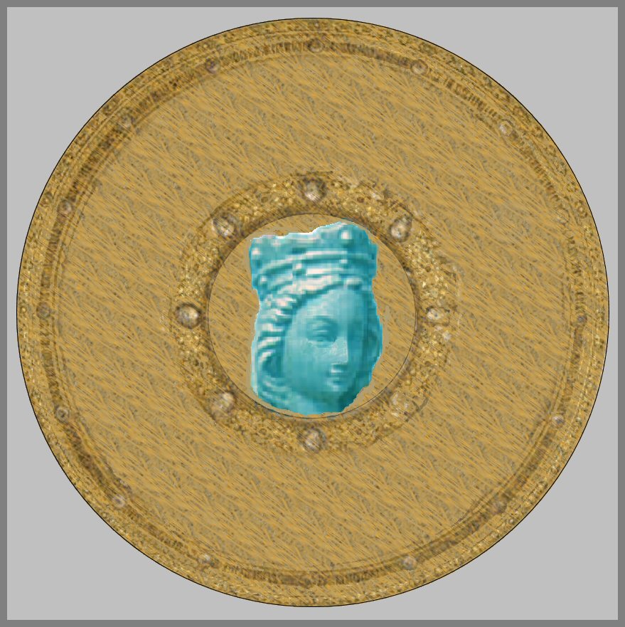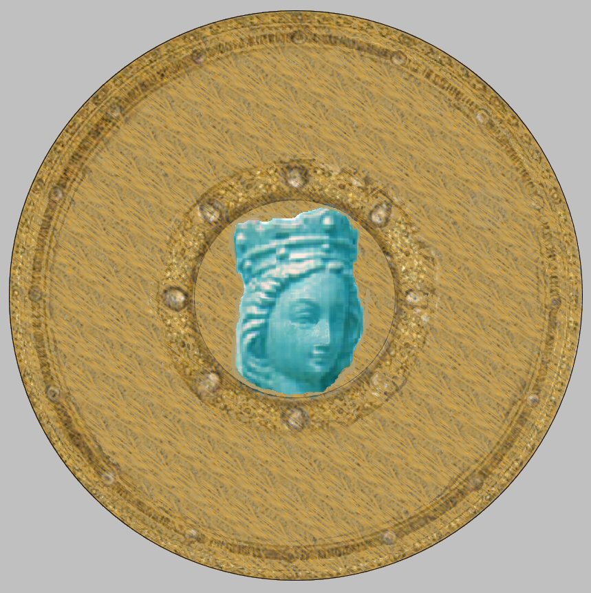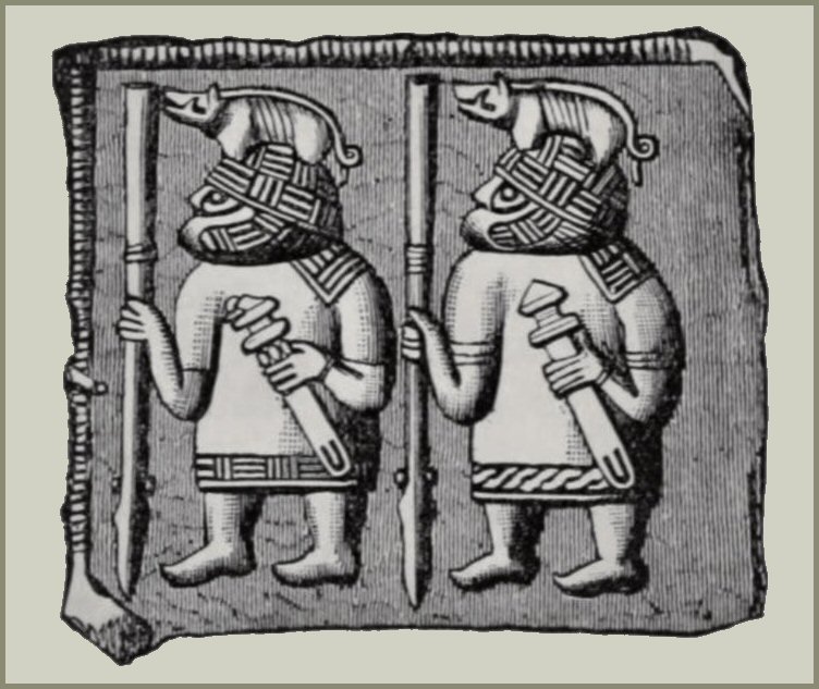 They turn to see a huge center stone in the pathway that leads to a circular ring of stones. The stone is an unmistakable image of a tall man in a robe, wearing a huge battle helmet with a plume.