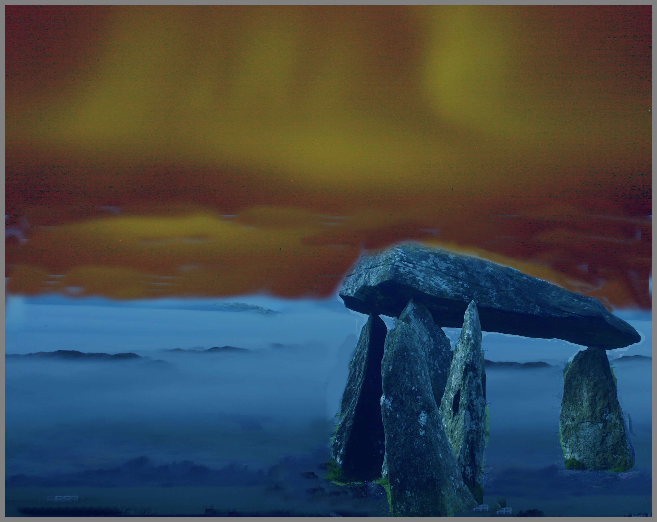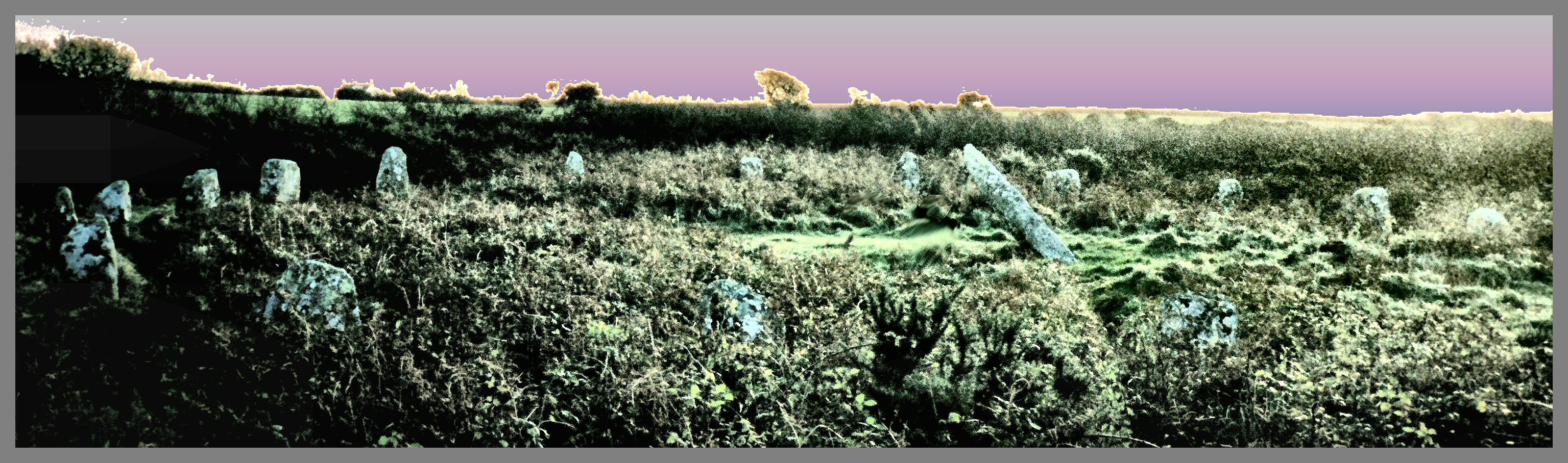 At sunrise, Arthur and Merlyn wake up at the Callanish Stones3.1 to see the moon set below the boggy purple and green pastures.