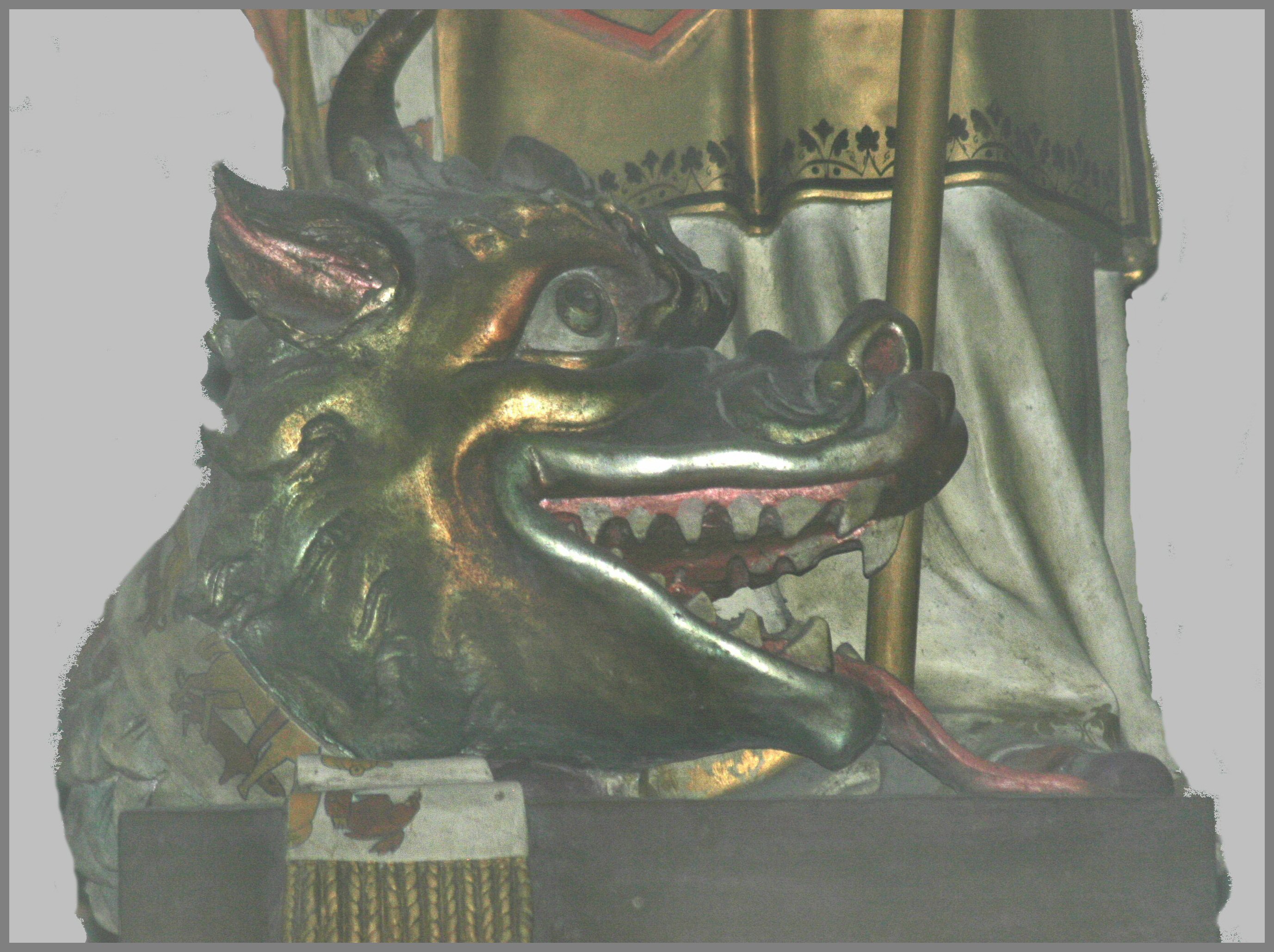 Merlyn, observing the dragon near his feet, “What is that dragon's head that is attached to your stole? Have you been murdering my dragons like those despicable armor-suited-princess-wooing knights?”