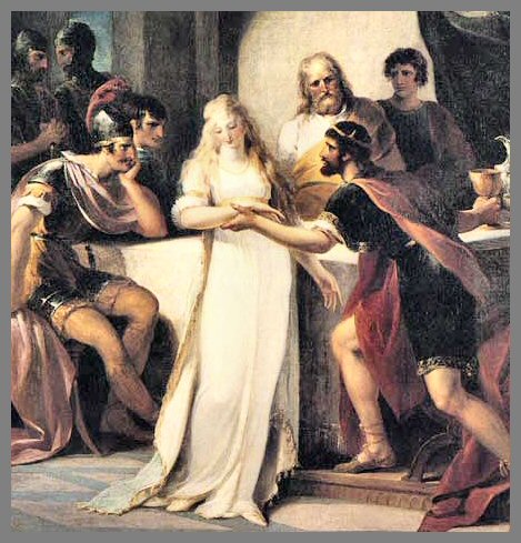 Merlyn grunts in disgust, “Why are we talking about Arthur's kingdom? All kingdoms rise and fall and are forgotten. Since when do you monks care about earthly kingdoms. Aren't you supposed to be praying night and day for God's kingdom? How could an insignificant monk like you have any part in that Camelot myth or shed tears for poor Guinevere's unrequited love for her dearest Lancelot? If you have so much affection for star-crossed lovers, why don't you, just go, Friar Laurence, and collect some mistletoe for Romeo's Juliet to kiss and die.”