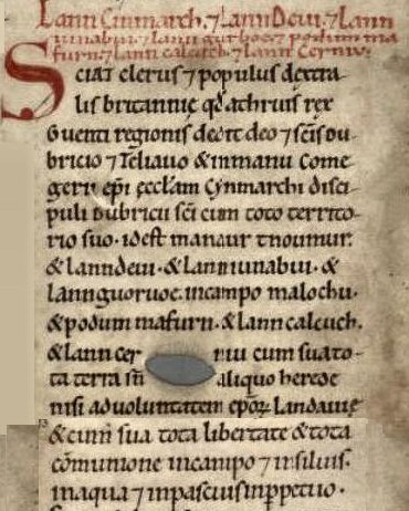 1. (This was the first charter in the Liber before the sort and it is under Dubricius.) It relates to the grant of Lann