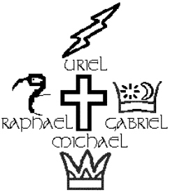 As they raised their goblets to Heaven to hail Jesus and Mary a ray of light from the sun, which was high in the sky, appeared to descend straight down towards the center of the circle where Gwendolyn was standing. Then a flash of light from the half moon, just risen, moved in a quick arc around the sky like a comet that intersected the ray of the sun and moved past it. For a brief moment the trail of the moon created a beautiful shining cross above the circle of the six sisters and six brothers.