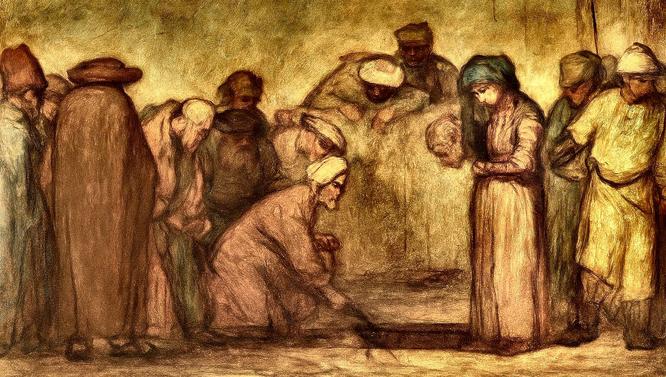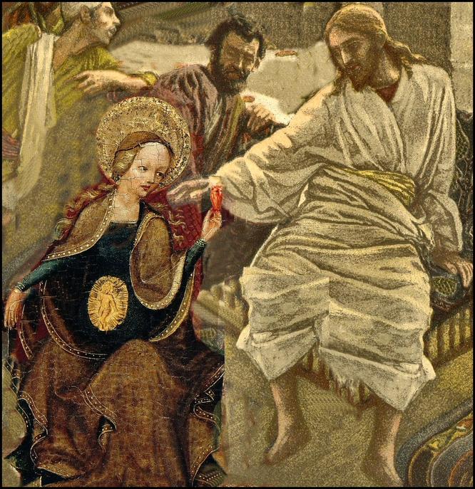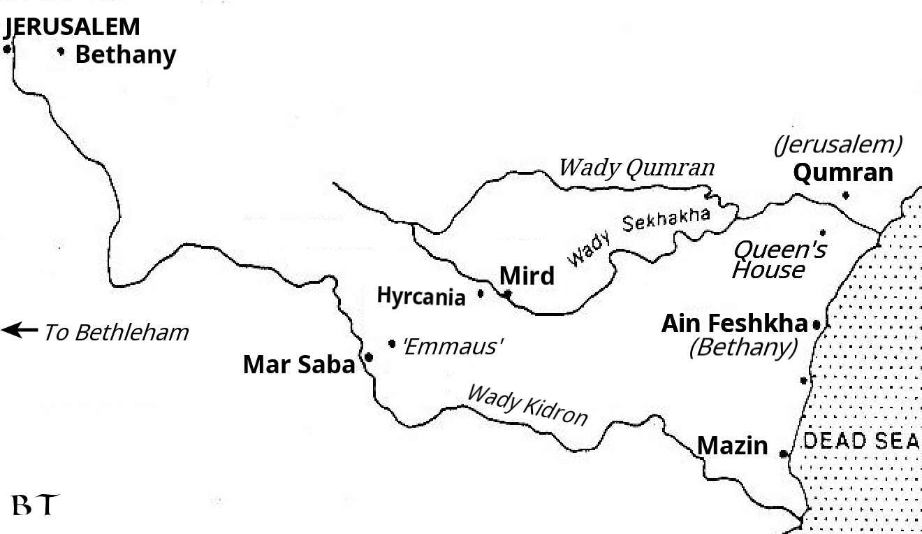 The method of the 'pesher' was found in the Dead Sea Scrolls (1946-1956 in the Qumran Caves on the northern shore of the Dead Sea) saying: 'the pesher is' after quoting a previous Biblical passage and expressing a belief that past events are being fulfilled in the present. The New Testament writers used a similar method that presents miracles as metaphors for changes that Jesus made to the early Church of 'the Way'. Thus when Jesus turns "water into wine", it is merely symbolic of a new rule that Gentiles, who previously could only be baptized in water, would now be allowed at the Holy Table where wine is served like the Last Supper. When Jesus raises Lazarus (Simon Magus) from the dead (merely excommunicated), this Lazarus lives in the House of Simonjn 12:1-8, thus Simon's Church, and it is Mary Magdalene who anoints Jesus to symbolize a 'son of David' is in her womb. Although more hidden, it can be shown that Jesus speaks to Mary Magdalene from the cross: perceiving the mother (Mary Magdalene) and the disciple standing by, whom Jesus loved (John Mark-Bartholomew: the stand-in for Magdalene at the males-only Last Supper), saying to the mother of him (the mother pregnant with his child), "Woman, Behold the son of you!" (his expected son inside Mary Magdalene's womb: turning out to be a daughter).jn 19:26