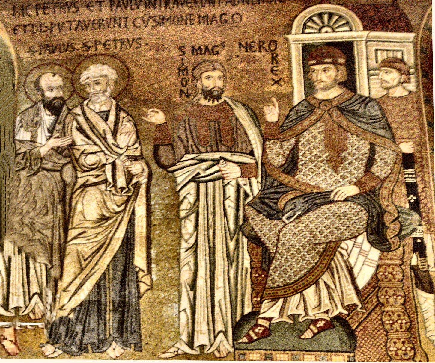 In the New Testament Simon Magus appears as a mere convert of Philip but clearly a powerful magician and the first Pope: And a certain man, by name Simon, was before in the city using magic, and amazing the nation of Samaria, saying himself to be a certain great one, to whom they were all giving heed, from small unto great, saying, 'This one is the great power of God;' and they were giving heed to him, because of his having for a long time amazed them with deeds of magic.Acts 8:9-11